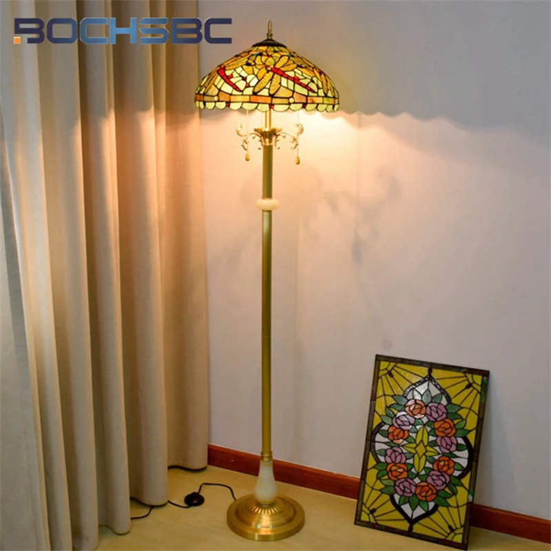 BOCHSBC Тиффани в стиле ретро зеленый сад стрекоза Напольная Лампа арт-деко отель Бар Ресторан гостиная спальня Вертикальная фотолампа