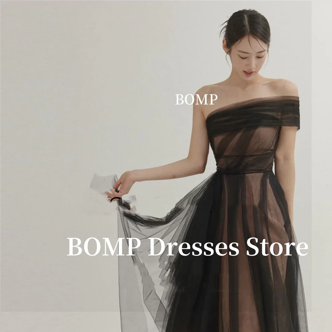 BOMP Иллюзионное черное тюлевое свадебное платье на одно плечо длиной до пола, вечерние платья, корейское свадебное платье для фотосессии Custom2026