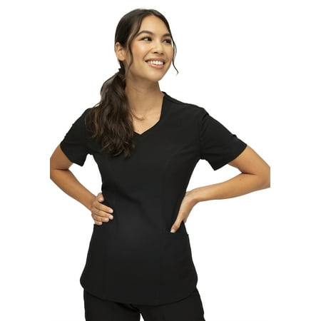 HeartSoul Break On Through Women Scrubs Top V-Neck Plus Size HS797 3XL Black