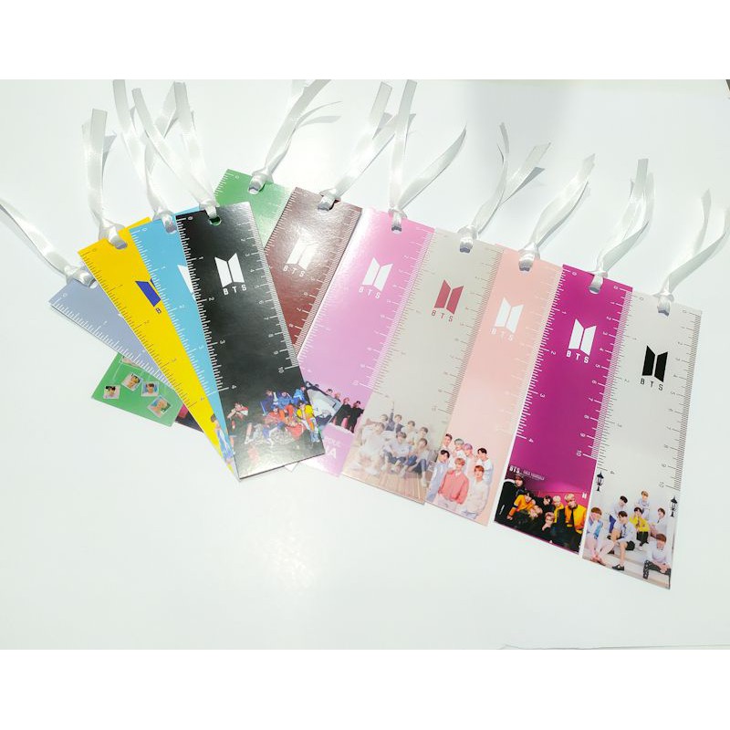Bookmark dengan desain yang eksklusif, Multifungsi sebagai sebagai penggaris dan terdapat foto personil BTS