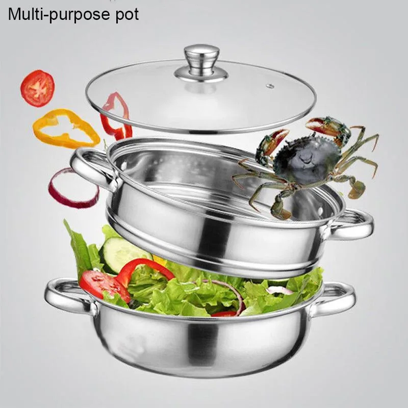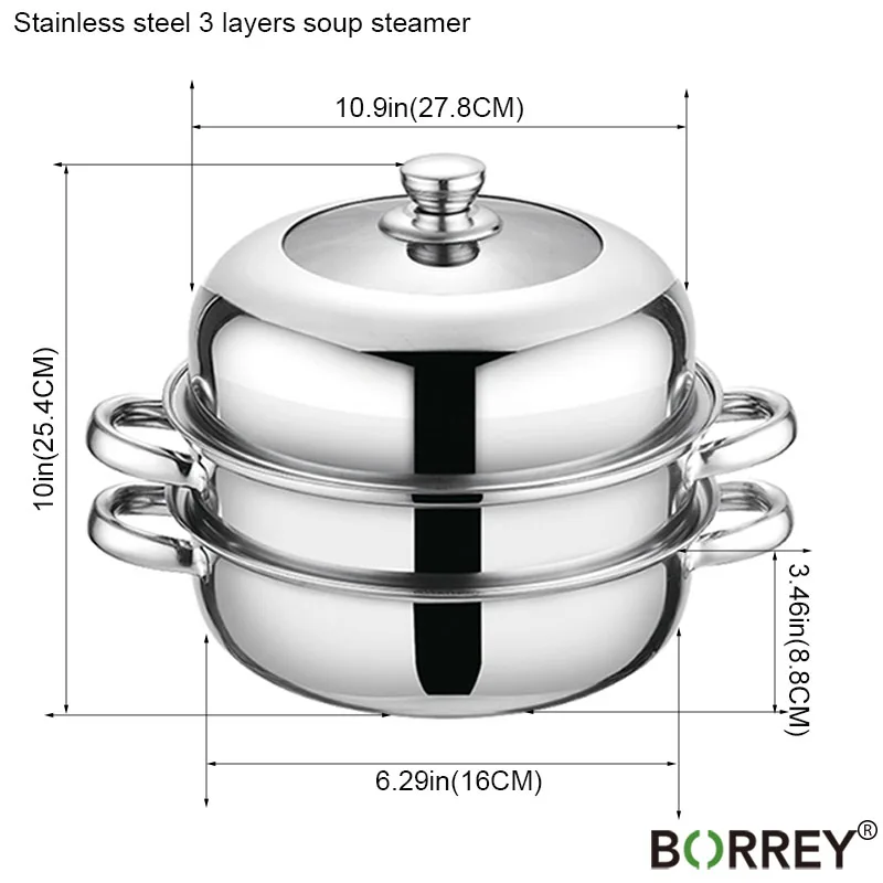 BORREY Нержавеющая сталь Пароварка горшок для супа пароварка корзина двойной котел 3 слоя Пароварка индукционная плита металлическая Паровар...