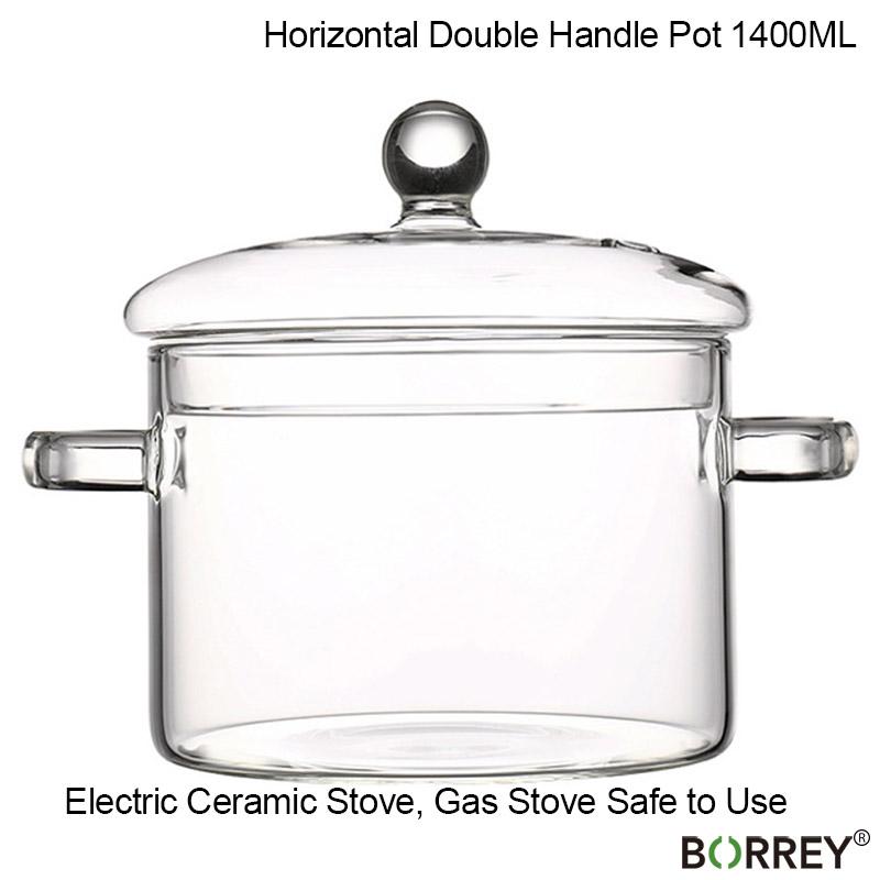 BORREY, высокотемпературная стеклянная кастрюля для каши, корейский горшок для супа, микроволновая печь для завтрака, стеклянная чаша с огневым подогревом, кухонный инструмент для приготовления пищи Lateral handle 1.4L