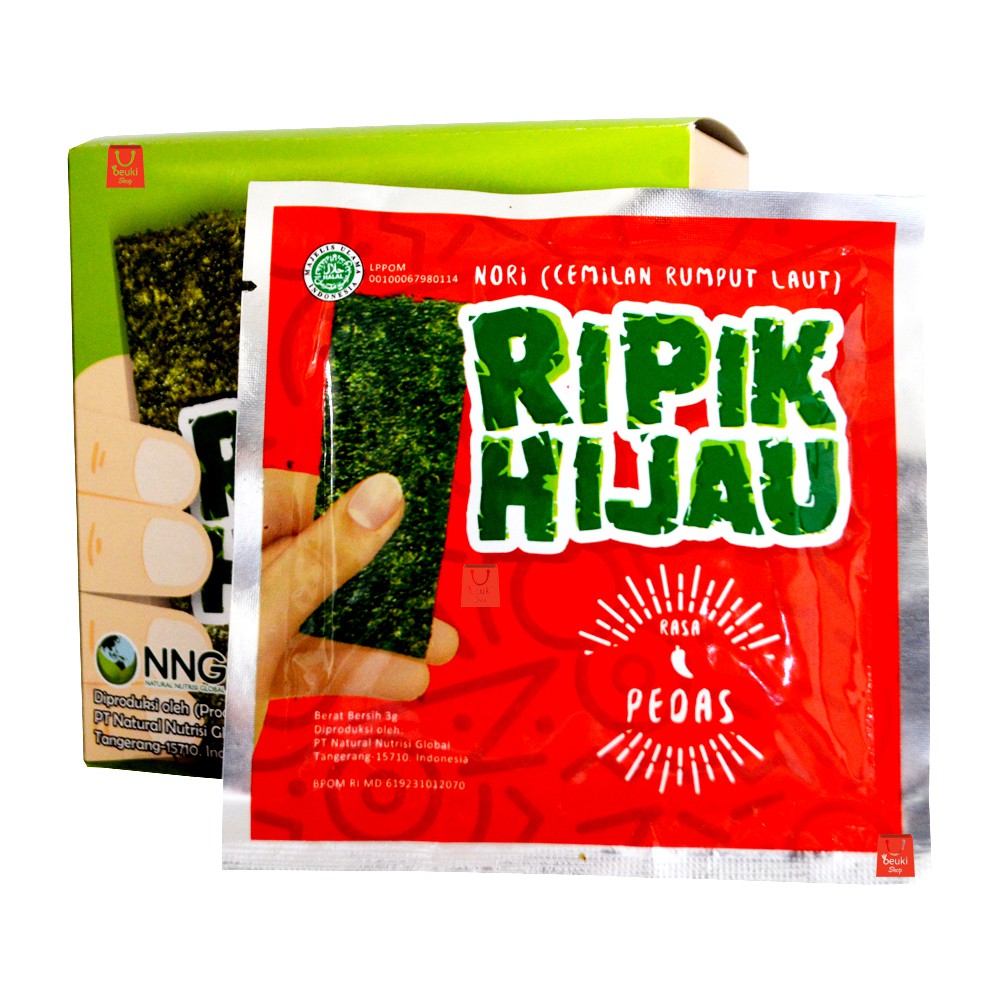 Akang Teteh suka sama rumput laut / nori, tapi pingin yang murah meriah ? Cobain deh, nori dari Ripik Hijau. Walaupun harga nya cocok di kantong, tapi soal rasa jangan diragukan. Ga kalah sama nori nori dengan merk yang udah terkenal. Buat bikin sushi pun bisa Akang Teteh, ada 3 rasa pilihan yang bisa Akang Teteh pilih, salah satunya rasa pedes, yuk sekarang udah ready ya di Beuki Shop
