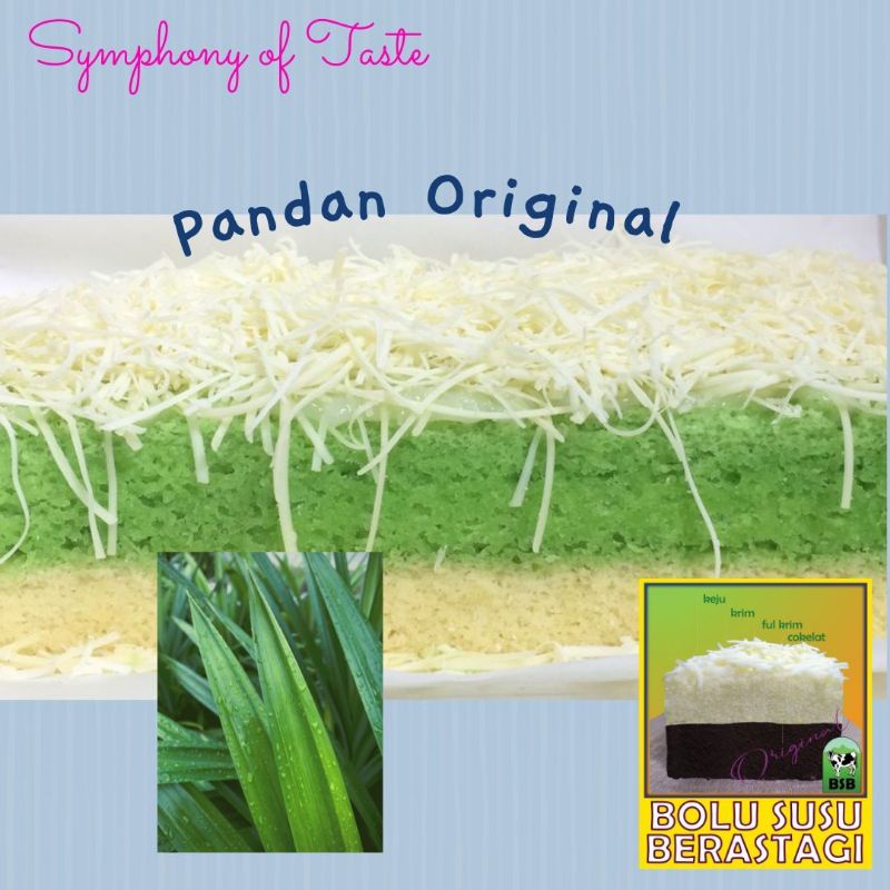 Bolu Susu yang diproses dengan cara dikukus/stim dengan dua lapis bolu rasa fulkrim dan pandannya yang sangat unik dan khas dengan diberi topping krim lumer dan taburan keju.