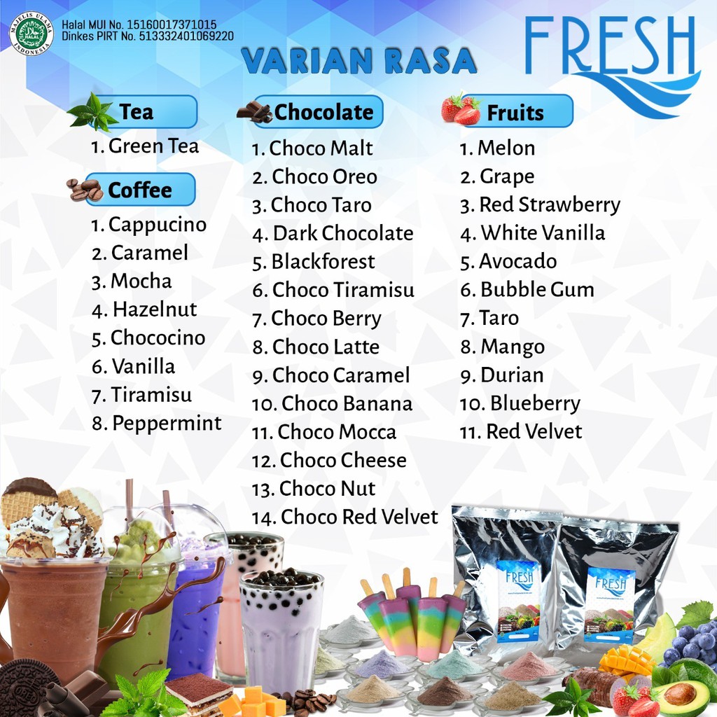 Fresh powderdrink bisa digunakan segala bentuk minuman, mulai milkshake, cappucino cincau dll