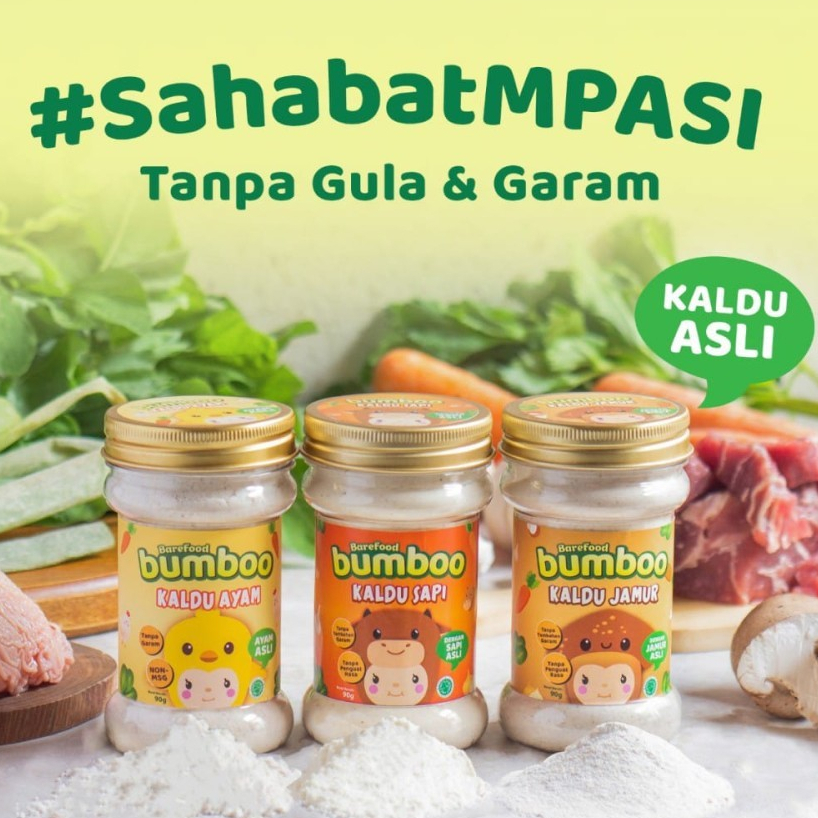 Produk baru dari Barefood! BUMBOO Kaldu Anak! Dibuat dari 100% ayam & jamur asli dengan bahan alami yang aman untuk dikonsumsi. Tidak ditambahkan gula dan garam seperti kaldu non-msg lainnya sehingga lebih baik untuk si kecil yang tidak boleh mengkonsumsi terlalu banyak garam.