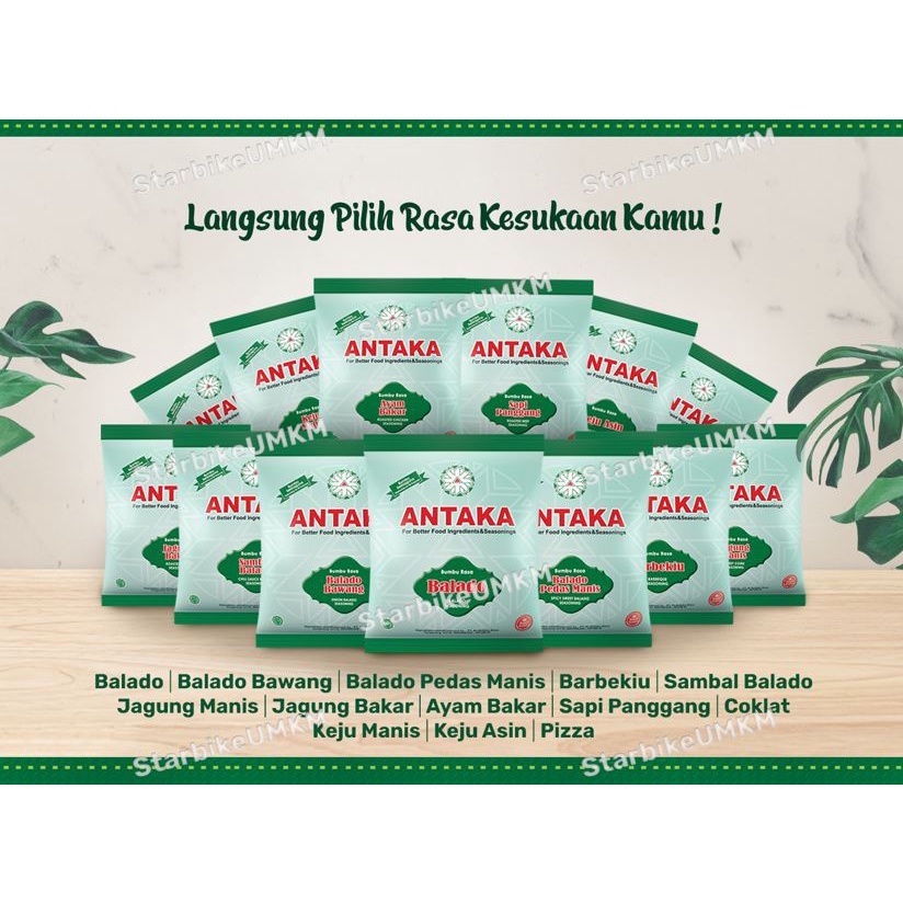 BUMBU TABUR ANTAKA adalah bumbu tabur serbaguna yang dapat dipakai untuk berbagai macam olahan makanan seperti kentang goreng, nugget, cilok, telor, gorengan dan masakan-masakan lainnya, sehingga membuat makanan lebih terasa nikmat.