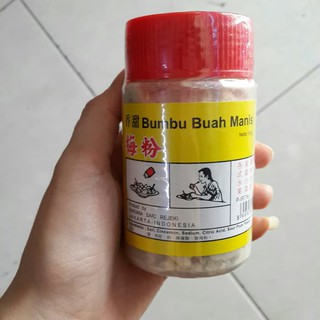 Bumbu serbuk kiamboy untuk dicocol dengan buah seperti apel, pir, jambu, rujak, dll. Rasa buah menjadi lebih nikmat, lezat, dan bikin ketagihan.