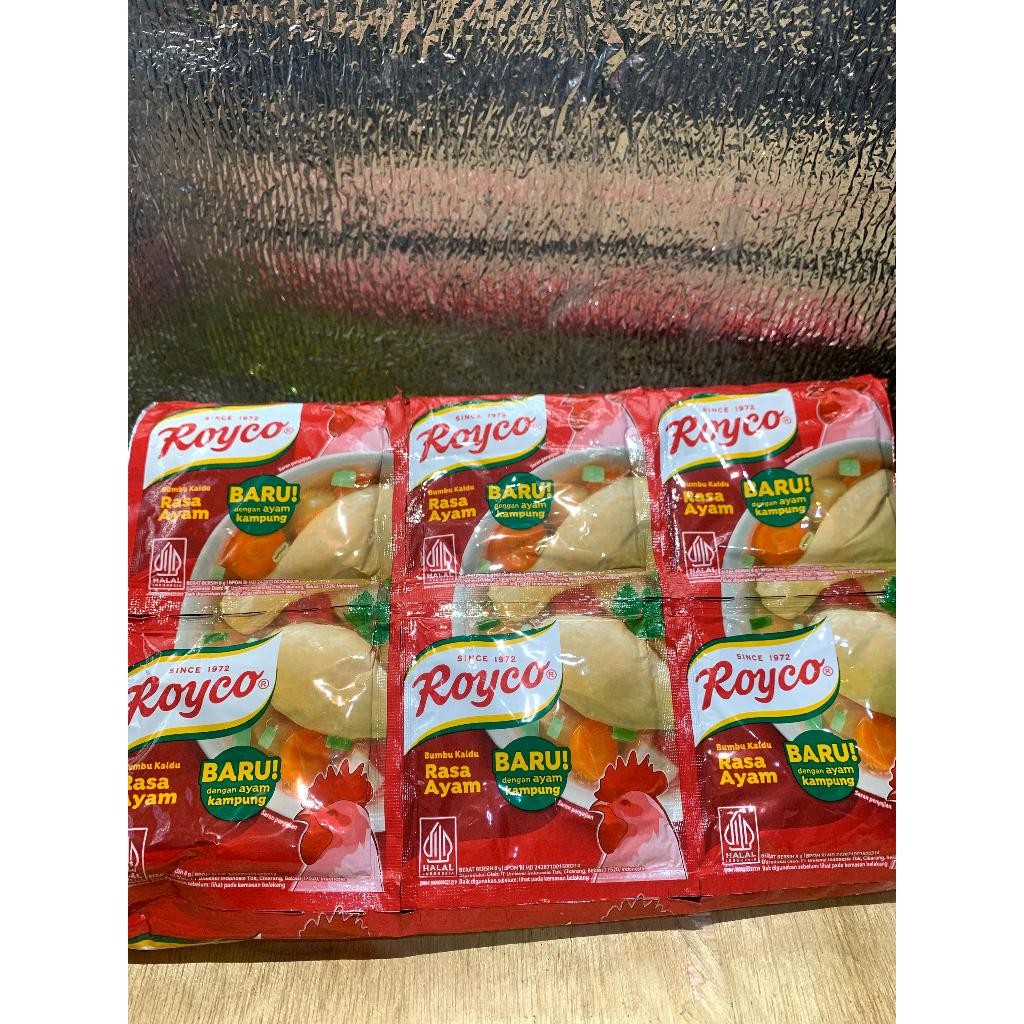 Penyedap Rasa Dengan Daging Pilihan Penyedap royco ayam merupakan salah satu bumbu dapur yang digunakan pada masakan agar menghasilkan aroma yang sedap dan rasanya tidak hambar. Diproses secara higienis dan sangat praktis. Terbuat dari daging ayam pilihan, dan rempah-rempah alami khas Indonesia sehingga mudah terserap sehingga cocok untuk beragam hidangan berkuah, aneka tumisan, dan lain-lain. Bahan-bahan yang di gunakan terdiri dari garam, gula, penguat rasa (mononatrium glutamat, dinatrium inosinat dan guanilat), Dekstrin, Lemak Nabati, Perisa Identik Alami Ayam (Mengandung Telur), Bawang Bubuk (1%), Minyak Nabati, Pati Jagung, Anti Kempal Silikon Dioksida, Lada Putih Bubuk, Pengatur Keasaman Asam Sitrat, Seledri Bubuk, Daging Ayam (0.02%) (Mengandung Antioksidan TBHQ), Kunyit Bubuk, Pewarna Tartrazin Cl 19140.
