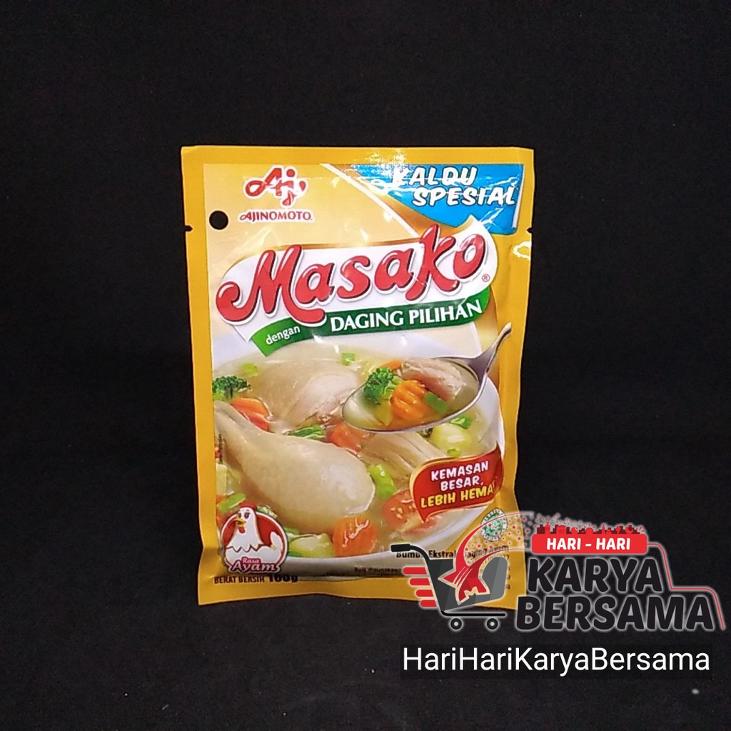Masako rasa ayam bumbu kaldu penyedap dibuat dengan perpaduan sempurna antara daging segar berkualitas, bumbu dan rempah pilihan. bumbu kaldu untuk menambah citarasa masakan anda dibuat dari bahan berkualitas hidangan yang lezat untuk keluarga anda.