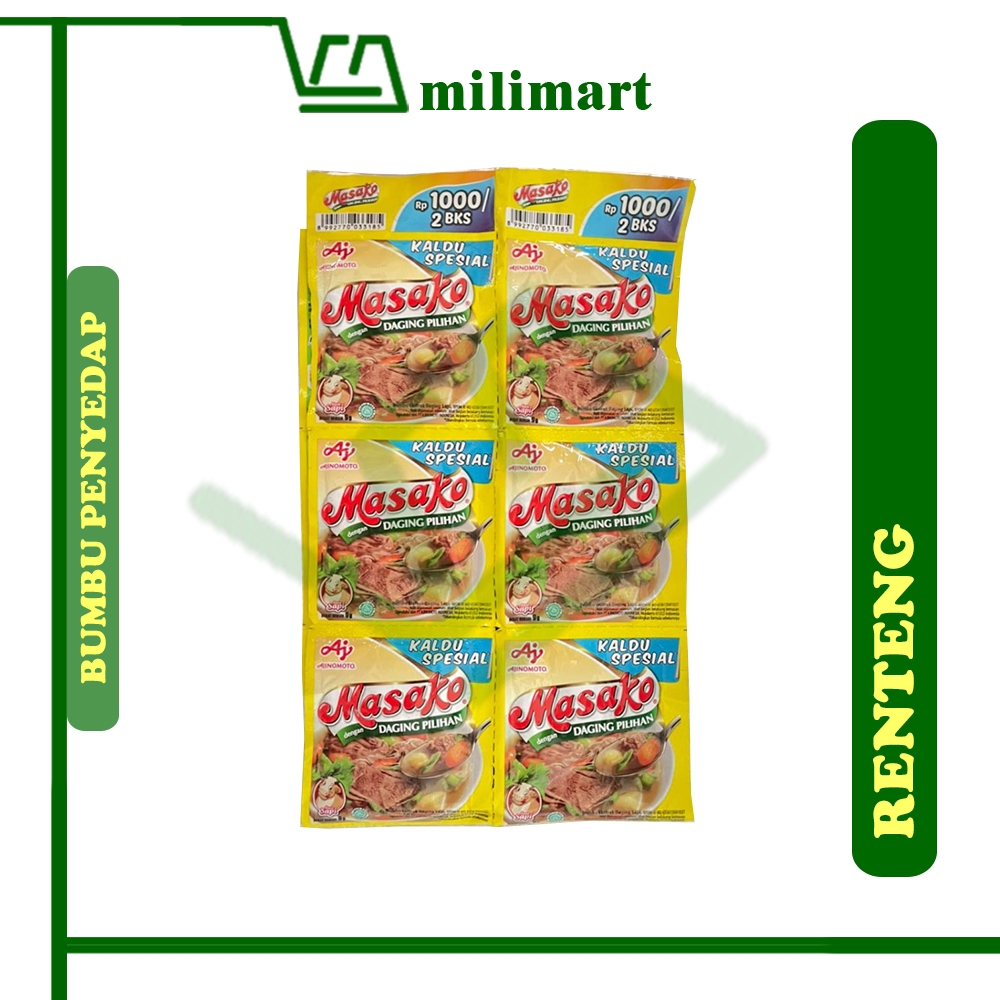 Barang readystock ya kak, jangan ragu untuk tanya dan konsultasikan dengan tim admin kami Masako®, bumbu ekstrak daging ayam/sapi dibuat dengan daging ayam/sapi berkualitas dengan kombinasi bumbu rempah pilihan yang pas. Memberikan kelezatan yang tidak bisa dihasilkan sendiri untuk hidangan sehari-hari dengan mudah dan cepat, bentuk cinta ibu untuk keluarga sama seperti kaldu buatan sendiri. Kandungan garam/ natrium 520 mg per sajian Sesuai dengan angka kecukupan gizi yang direkomendasikan yaitu
