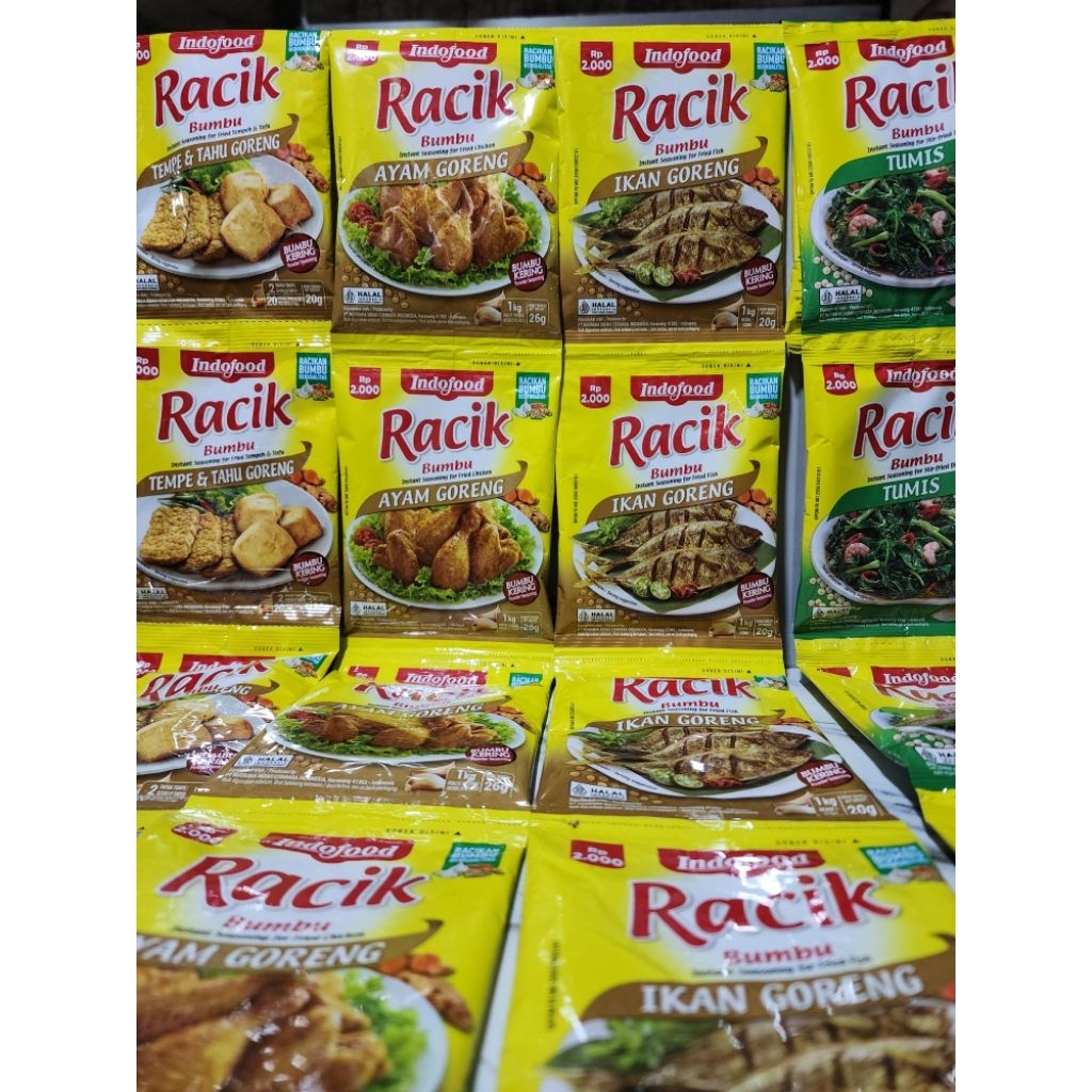 Indofood Bumbu Racik Ikan Goreng terbuat dari bahan pilihan seperti bawang merah, gula, garam, minyak nabati dan bahan l Diproses secara higienis, menghasilkan rasa yang nikmat seperti cita rasa khas Indonesia. Bumbu Ikan Goreng ini mengandung rempah-rempah sehingga bermanfaat bagi tubuh.