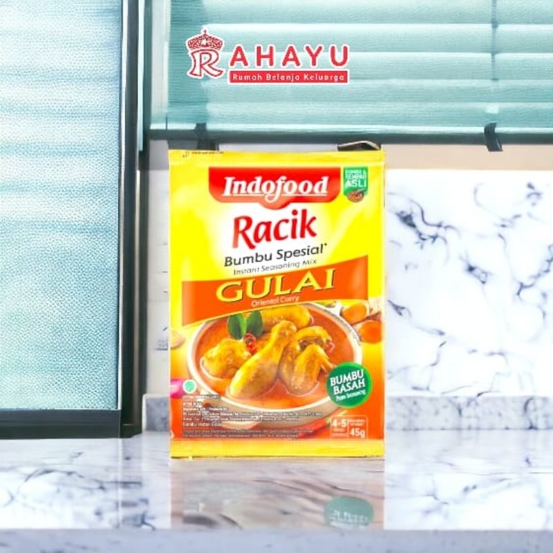 Indofood Racik Gulai adalah bumbu instan yang diolah dengan proses terbaik dan terbuat dari rempah asli sehingga menghasilkan tekstur kuah gulai yang kental nan lezat.
