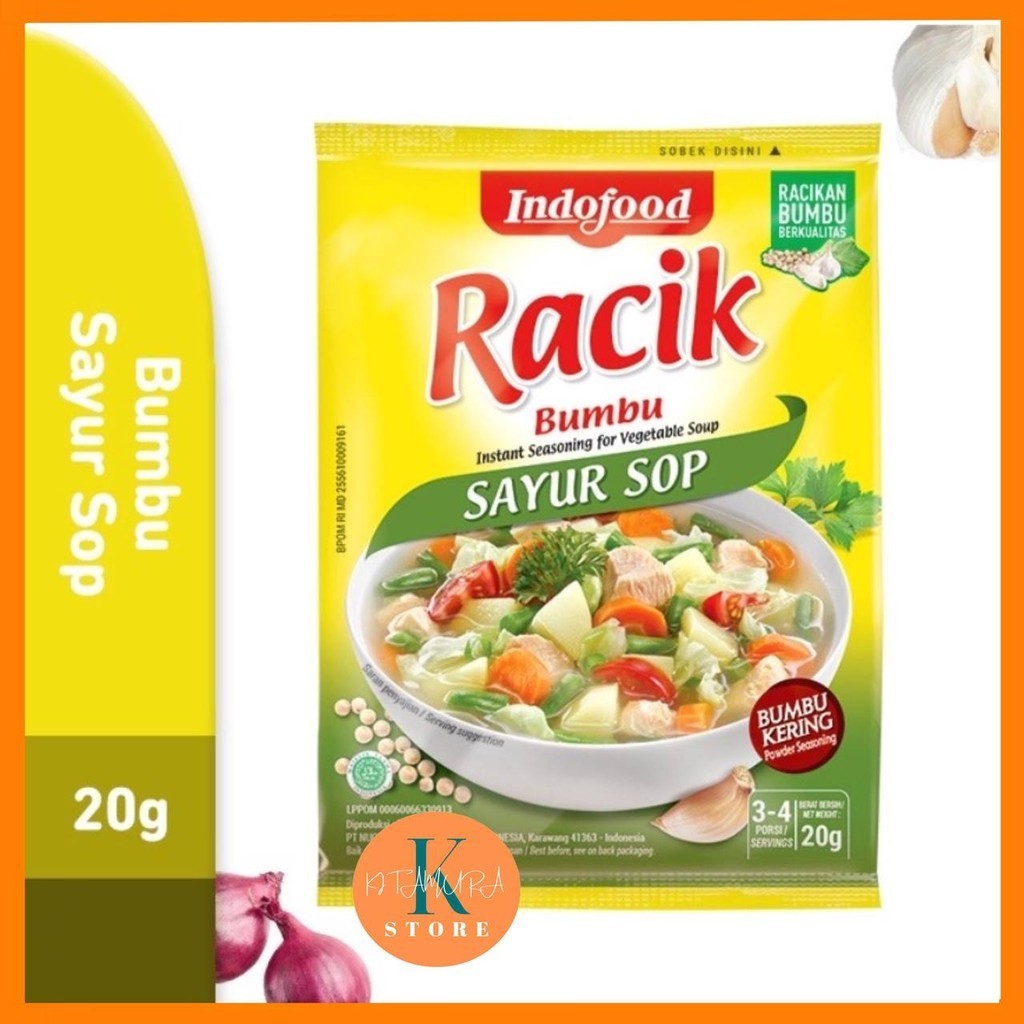 Racik Sayur Sop Satu lagi inovasi Bumbu Racik Indofood. Kini hadir paduan bumbu dan rempahrempah asli untuk sop. Cukup 1 sachet, satu hidangan sayur sop lezat cepat tersaji.