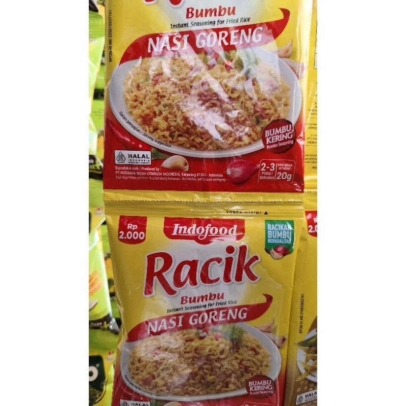 Racik bumbu nasi goreng adalah bumbu masak instan berbentuk bubuk yang terbuat dari rempah-rempah alami pilihan yang dikeringkan dan dihaluskan. Bumbu racik nasi memiliki beberapa keunggulan, di antaranya: Mudah dan cepat digunakan, Tanpa pengawet dan pewarna buatan, Rasa lezat, Halal.