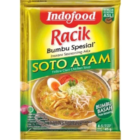 Bumbu Racik Soto Ayam adalah pilihan tepat untuk kamu yang ingin menikmati soto ayam dengan rasa autentik khas Indonesia, tanpa harus menyiapkan banyak bumbu. Dibuat dari rempah-rempah pilihan dan diracik secara praktis, bumbu ini menghasilkan kuah soto yang gurih, segar, dan harum. Cocok disajikan dengan nasi hangat, soun, telur rebus, dan taburan bawang goreng.