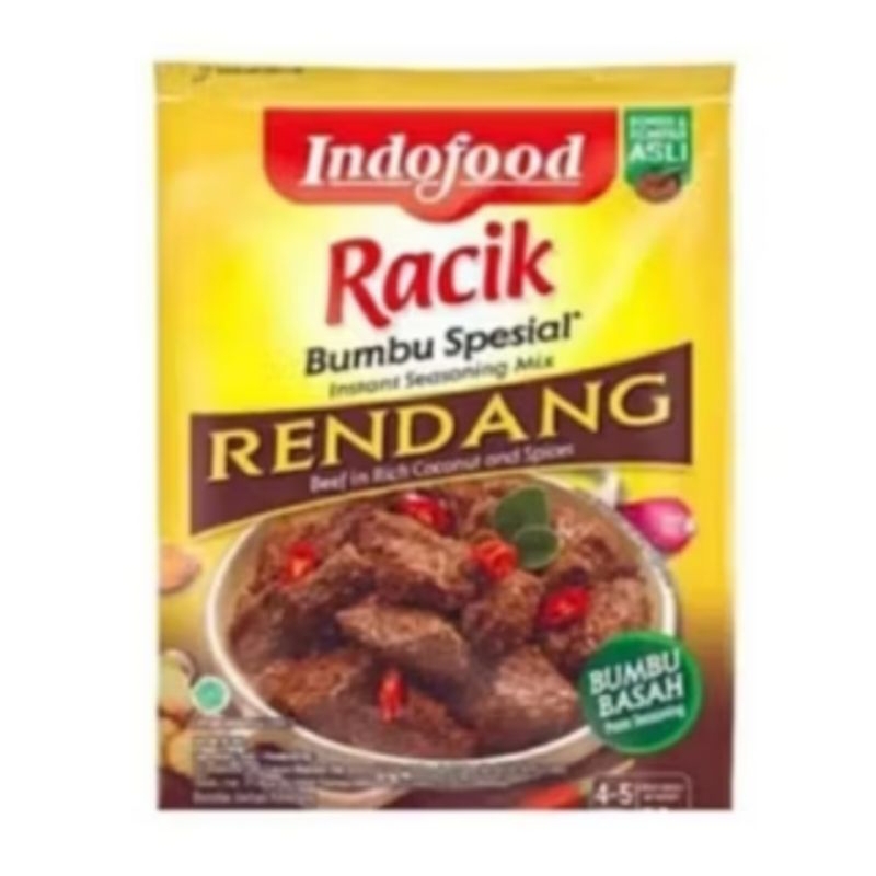 Bumbu racik special indofood RENDANG,bumbu rendang basah siap pakai memiliki citarasa rendang asli khas Indonesia yang di sukai keluarga,masak jadi g ribet.