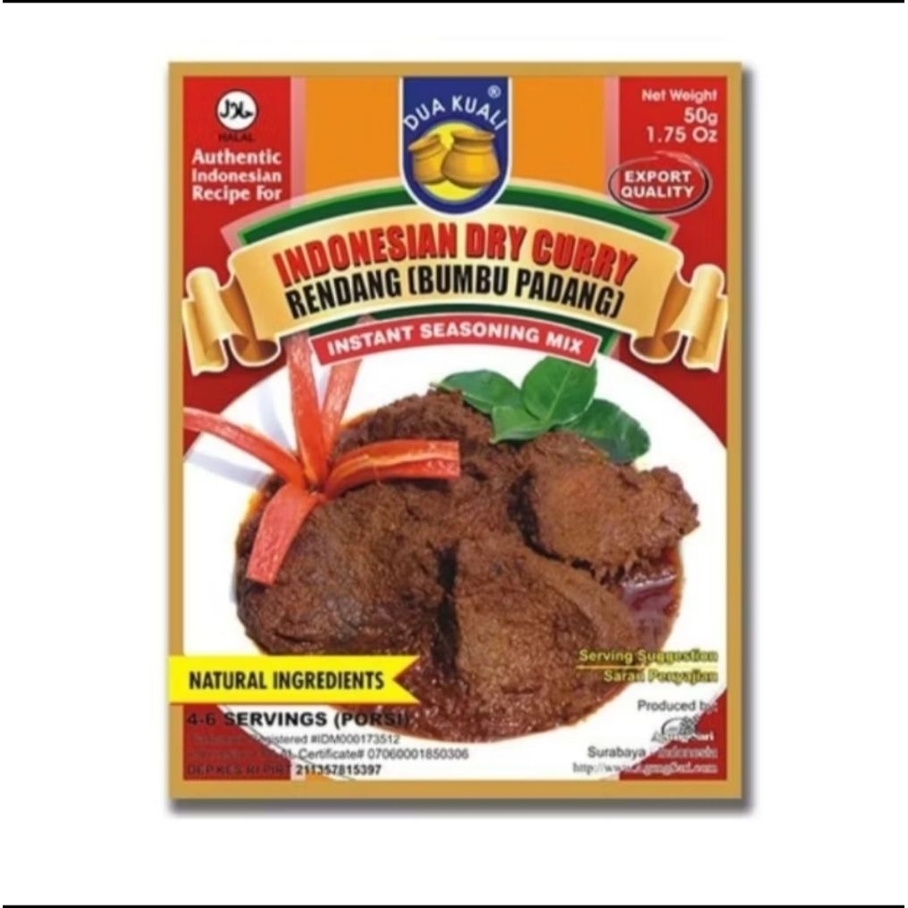 Bumbu Dua Kuali Rendang memiliki ijin Departemen Kesehatan dan sertifikat HALAL dari MUI Jatim.