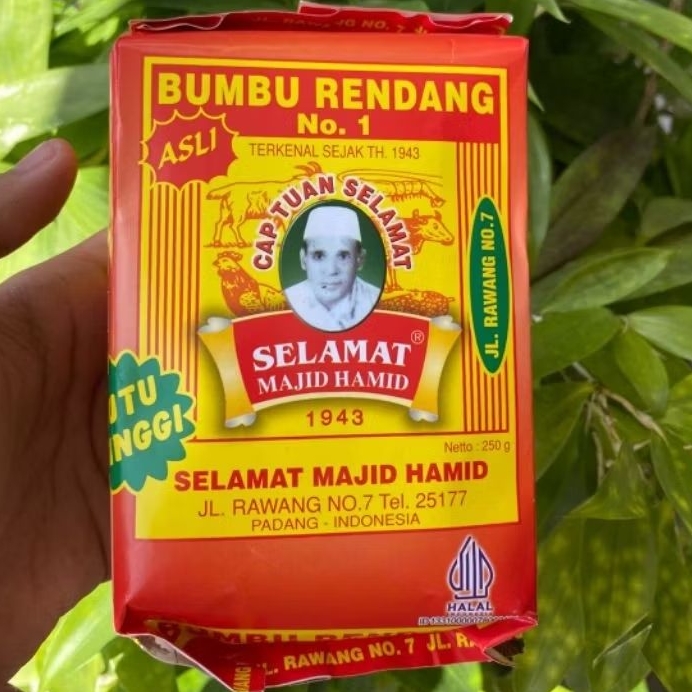 bumbu rendang cap tuan selamat digunakan untuk menambah citarasa rendang khas Minang. petunjuk penggunaan ada di belakang kemasan