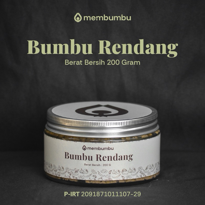KOMPOSISI BUMBU RENDANG : Bawang Merah, Bawang Putih, Jahe, Laos, Ketumbar, Kemiri, Lada, Daun Salam, Daun Jeruk, Adas, Jinten, Kapol india, Kapulaga, Alba, Asam Kandis, Kayu manis, Daun Kunyit, Serai, Cengkeh, PK, Pala