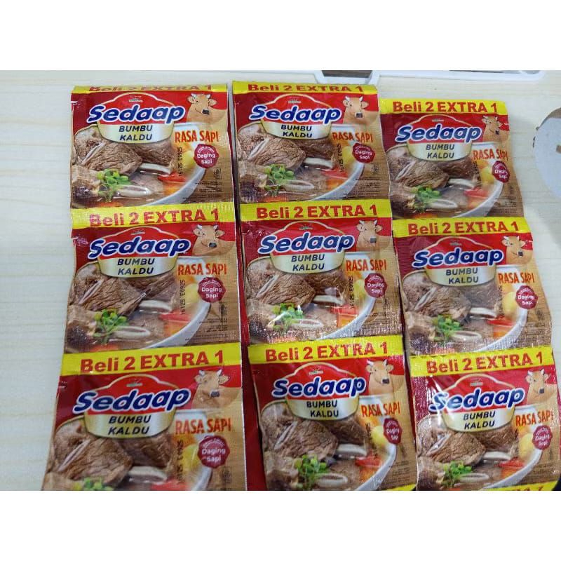 Bumbu kaldu sapi SEDAP adalah produk yang dijual dengan kemasan 18 renteng. Produk ini memberikan rasa gurih pada masakan dan memudahkan dalam memasak. Bumbu kaldu sapi SEDAP dapat digunakan untuk berbagai jenis masakan seperti sup, tumis, dan gorengan.