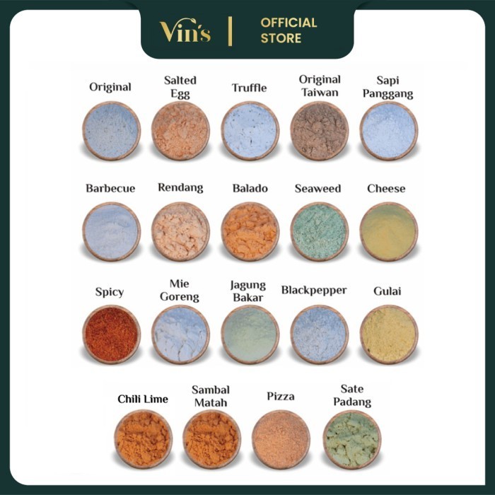Bumbu tabur Vin's merupakan bumbu tabur dengan kualitas premium, karena kami menggunakan bahan bahan yang berkualitas tinggi dan memiliki citarasa yang lebih natural (bila dibandingkan dengan produk sejenis yang terlalu terasa "micin").