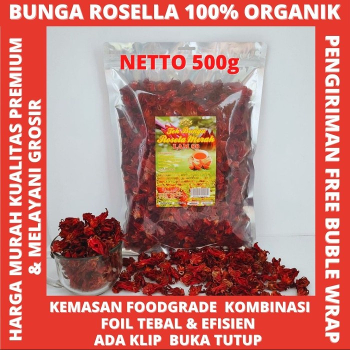 Selain itu Rosella mengandung Kalsium tinggi (486 mg/100 gr) dan Omega 3. Rosella juga diperkaya Vitamin A, Iron, Potasium, Beta Caroteen, dan Asam Esensial.