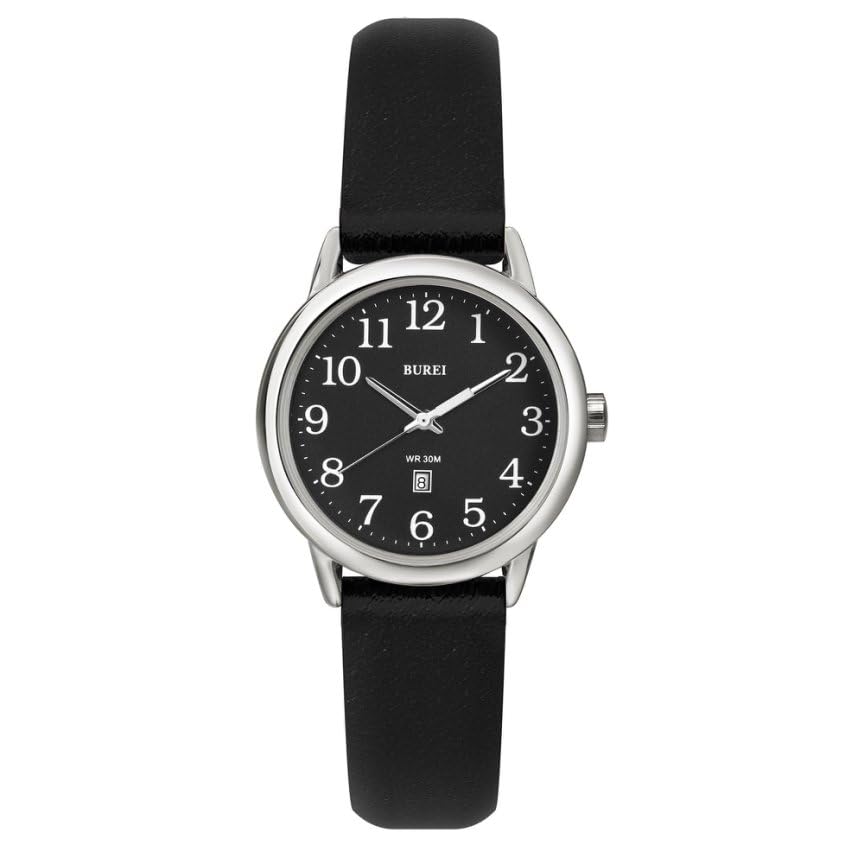 BUREI Аналоговые Кварцевые Дата Люминесцентные Кожа Праздничный Подарок Женские Часы, Стильные, Водонепроницаемые, Дисплей, Циферблат, Легко Читаемый Циферблат, Ремешок, Простые, чёрный