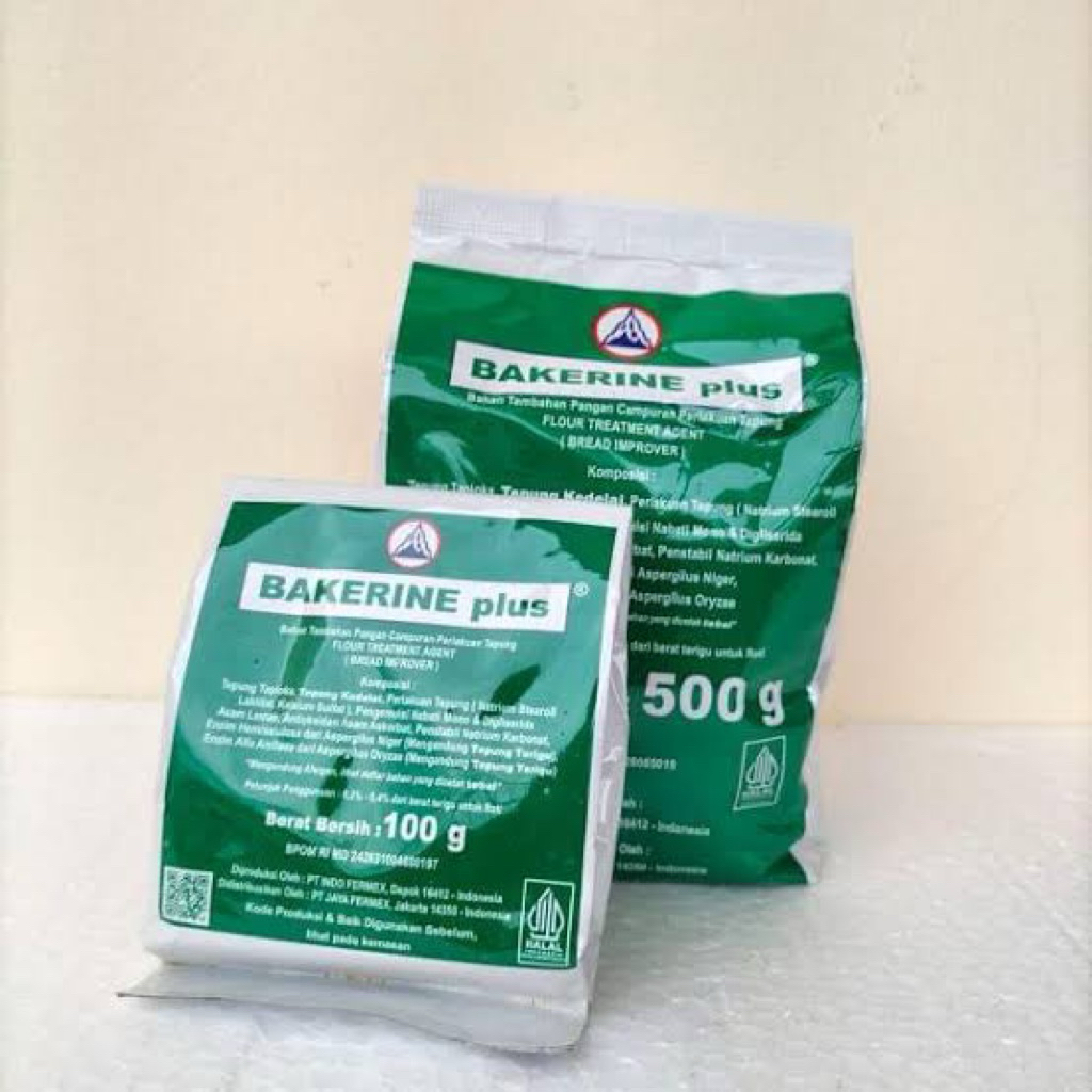Bakerine Plus Bread Improver / Pelembut Kue dan Roti kemasan 500gr (Berat yg tertera hanya disesuaikan agar mudah dipickup). Tersedia juga Garam, Gula Halus, Terigu, Saus, Bahan Kue dll silahkan cek di etalase produk kami.