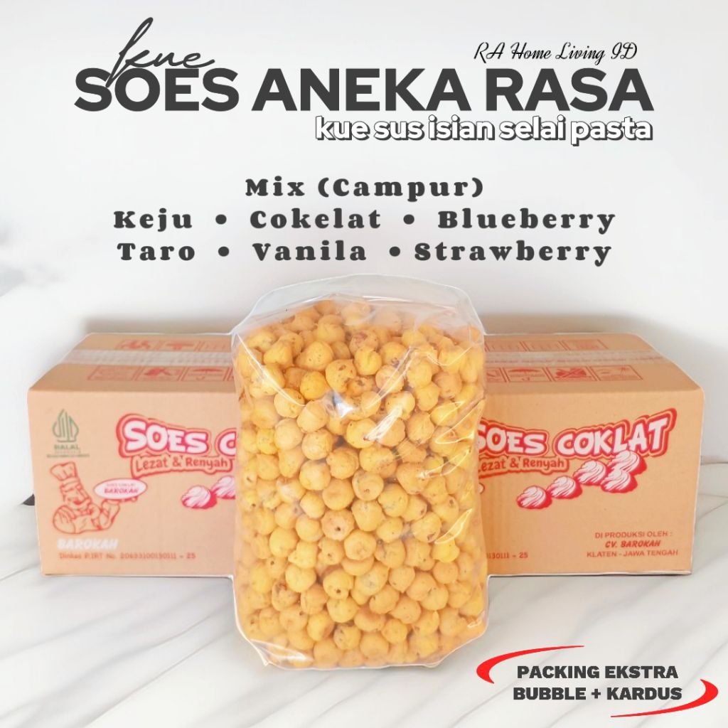 : Kue Soes Aneka Rasa adalah kue kering yang berisikan selai pasta premium dan memiliki warna yang lebih cerah.