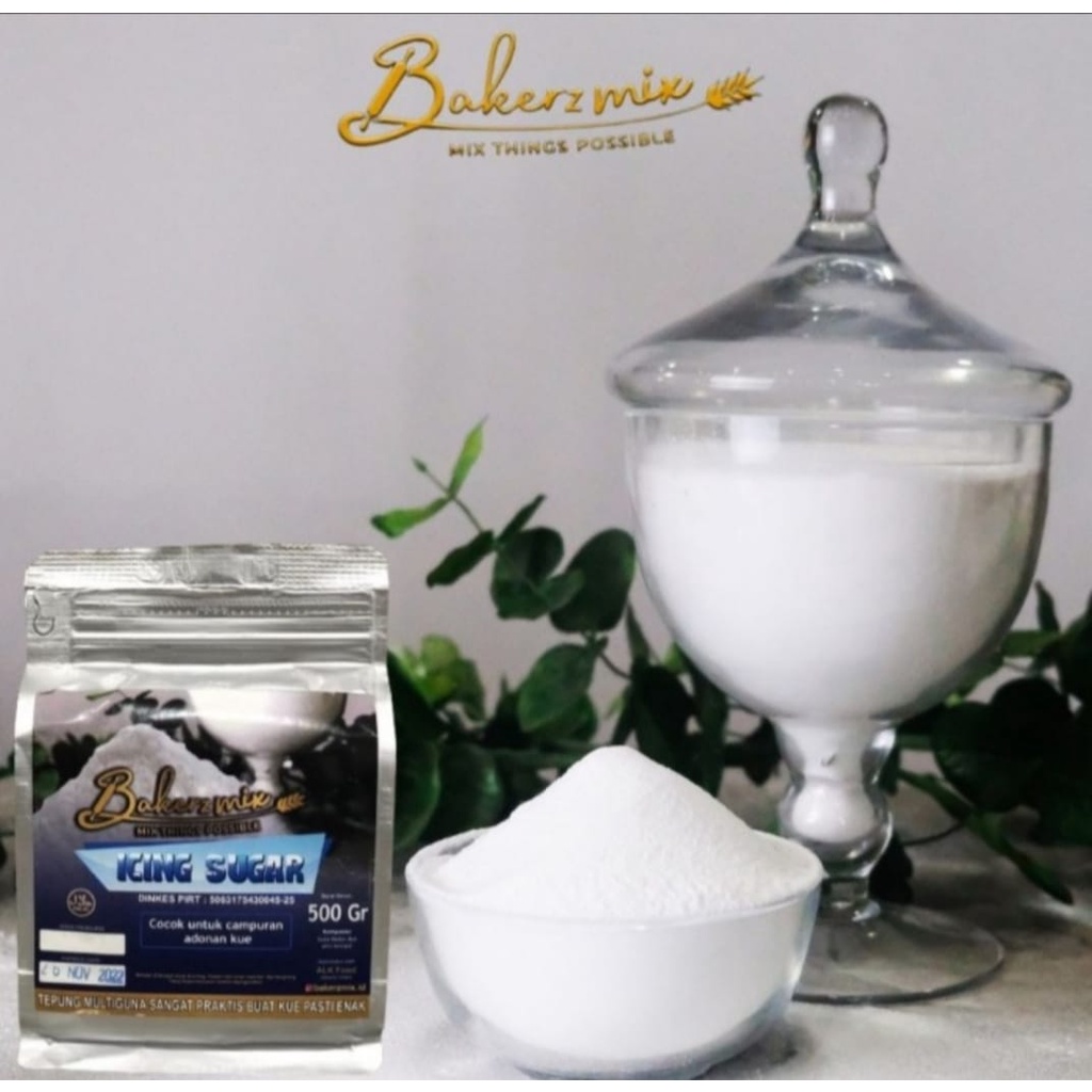 Bakerzmix Icing Sugar adalah Tepung Gula hiasan untuk melapisi atau menutup kue, cake, dan biskuit, Dapat juga dipakai sebagai model dekorasi berbagai lapisan permukaan kue. Icing Sugar dapat digunakan sebagai aksen pada roti kadet yang berbentuk kecil-kecil, kue-kue kecil yang diletakkan dalam cup kemudian dihias dengan cery, dan juga macam-macam sponge cake.