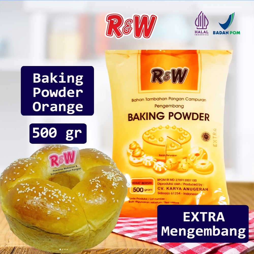 Baking Powder Rajawali R&W RW Sebagai pengembang makanan, terutama pada roti dan kue