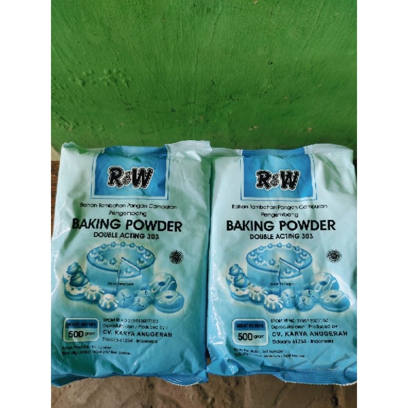 Baking Powder Double Acting DA 505 Pengembang Kue Rajawali R&W 500 gr untuk Brownies Baking Powder Rajawali R&W RW Double Acting (DA) Sebagai pengembang makanan, terutama pada roti dan kue Tingkat mengembang : Mengembang MEDIUM, dibawah Baking Powder Double Acting 303 Aplikasi : 1. cake, 2. bolu panggang, 3. bolu kukus, 4. cupcake, pancake, biscuit 5. dan produksi makanan lainnya yang dipanggang, dikukus ataupun digoreng. Halal MUI No. BPOM RI 278913007100 Cara Penyimpanan : Tutup/ikat kemasan Baking Powder Rajawali R&W RW dengan Karet rapat-rapat, lalu simpan dalam wadah toples tertutup, Agar Baking powder tidak bereaksi terhadap udara