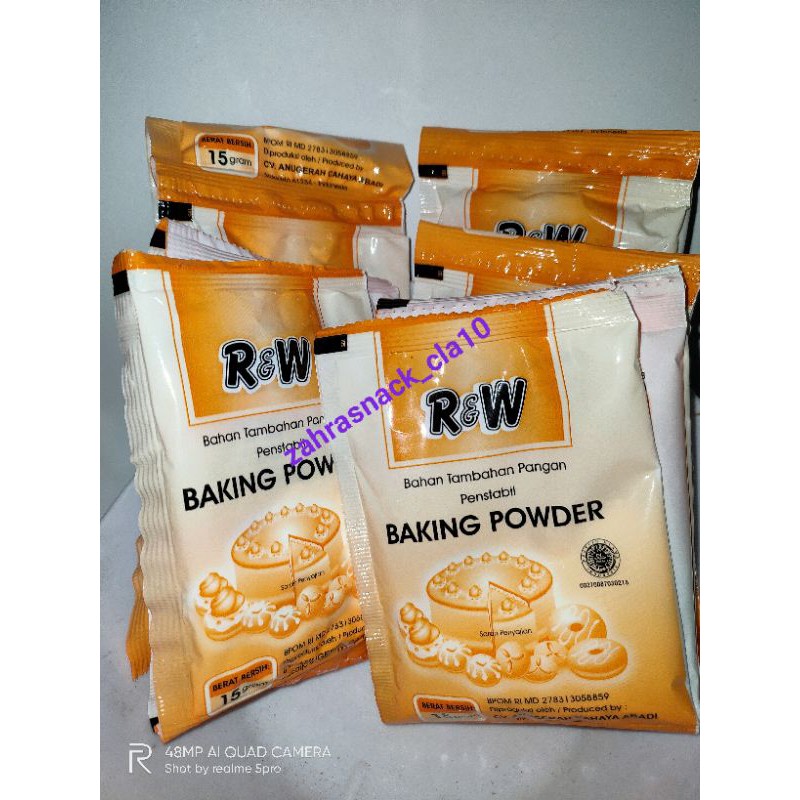 Baking Powder R&W adalah bahan untuk menstabilkan adonan segala roti, kue kering, kue basah, atau segala pengempuk, dll
