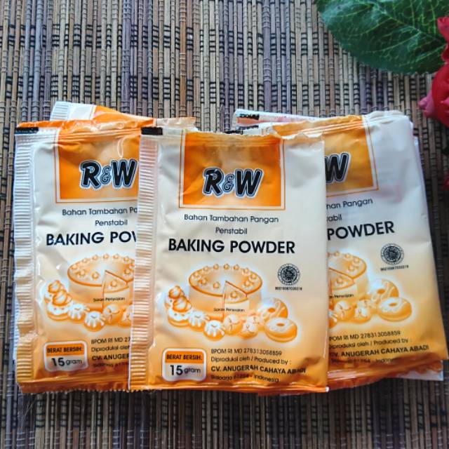 Baking Powder 15gr merk R&W cocok digunakan untuk tambahan pembuatan kue, tart, martabak dsb