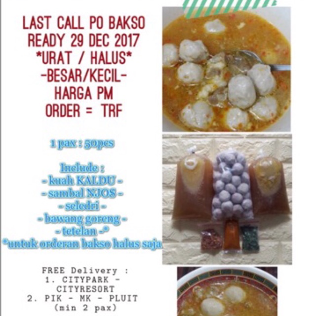Yuukk tunggu apa lagi, di pesen sekarang juga mumpung belum kelewatan Biar hari minggu bisa langsung nyicipin Bakso nya