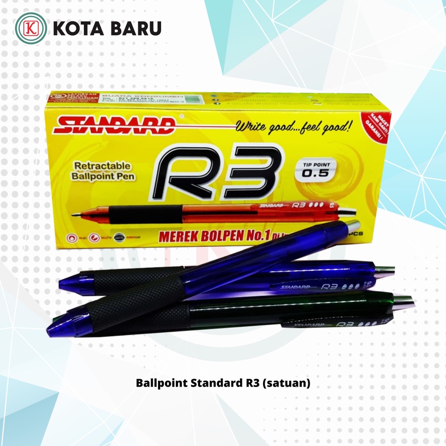 Pulpen/Pen Standard R3 tinta Hitam 0.5 mm
