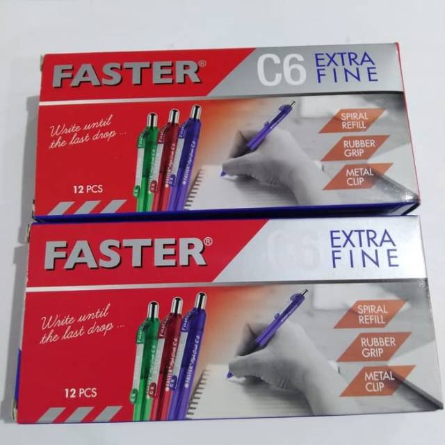 Balpoint/Pulpen Faster c6 Hitam Biru Warna bagus dan lebih jelas dan tidak bocor. HARGA DIATAS /PACK isi 12Pcs