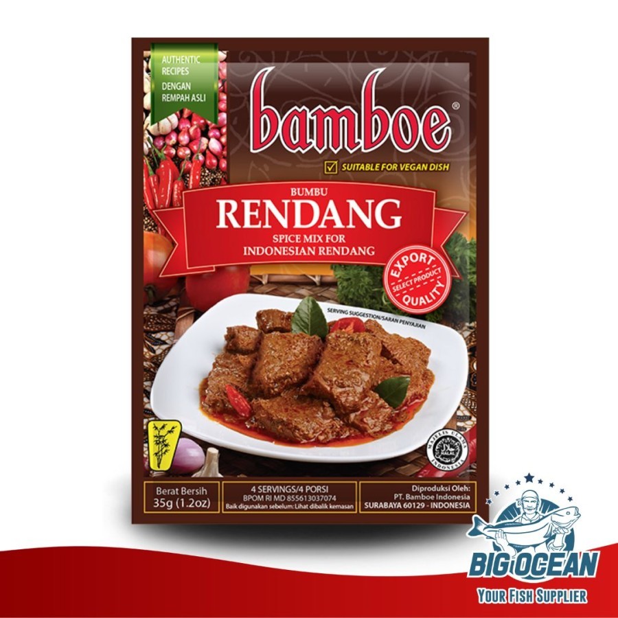 Bamboe Rendang adalah bumbu instan yang praktis untuk membantu memasak rendang. Bumbu ini diolah menggunakan bahan-bahan pilihan yang berkualitas untuk menghasilkan hidangan rendang yang lezat. Cocok untuk membuat rendang dari berbagai bahan daging, seperti sapi, kambing, bahkan ayam. 1 sachet bumbu instan ini memiliki berat 35 gram dan dapat digunakan untuk memasak 4 porsi makan.