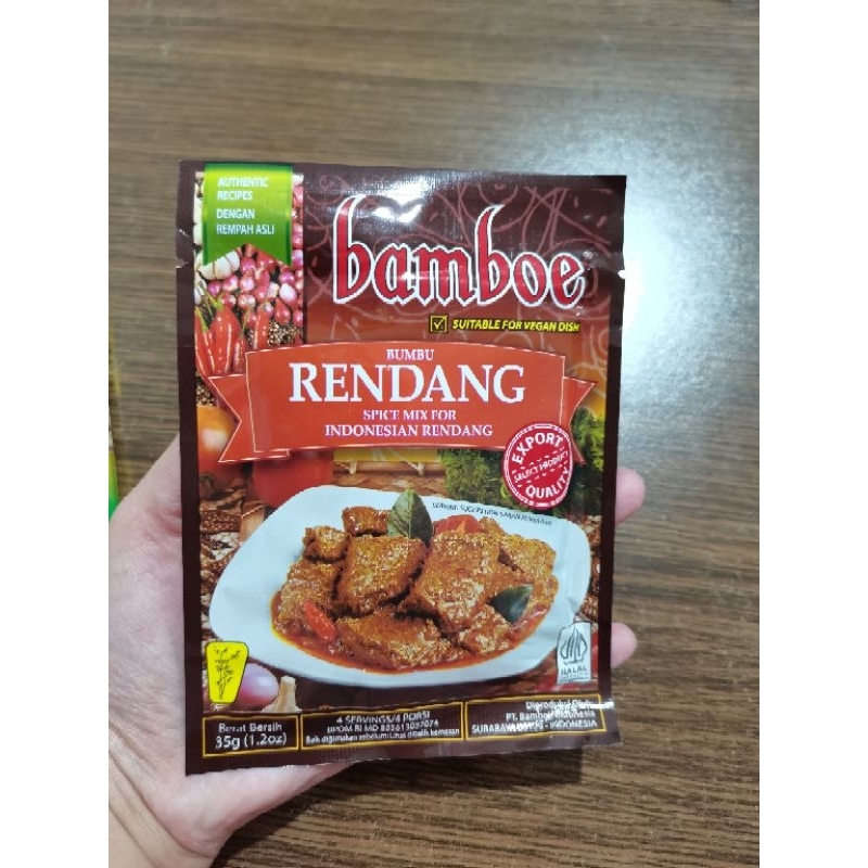 Bamboe Rendang adalah bumbu instan dari Bamboe yang dirancang khusus untuk memasak rendang. Bumbu ini mengandung racikan rempah-rempah pilihan yang memberikan rasa gurih, pedas, dan aroma khas pada hidangan rendang.