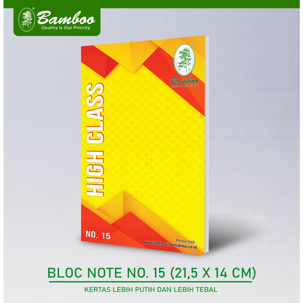 Bamboo Bloc Note 15 Note Book [21.5 x 14 cm/ 20 pcs/ pack] merupakan note book yang memiliki isi kertas 30 sheet HVS 60 gsm. Dapat digunakan sebagai catatan harian untuk keperluan aktivitas Anda. Harga tercantum adalah harga per PCS BUKU dan tidak termasuk ongkos kirim!