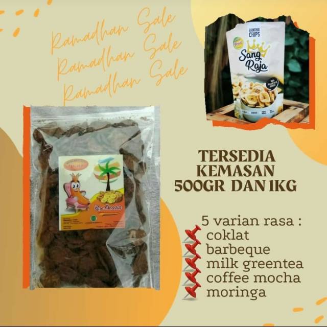 Banana Chips sang Raja terbuat dari pisang asli sang raja.. Tersedia kemasan 500gr.. 5varian Rasa..