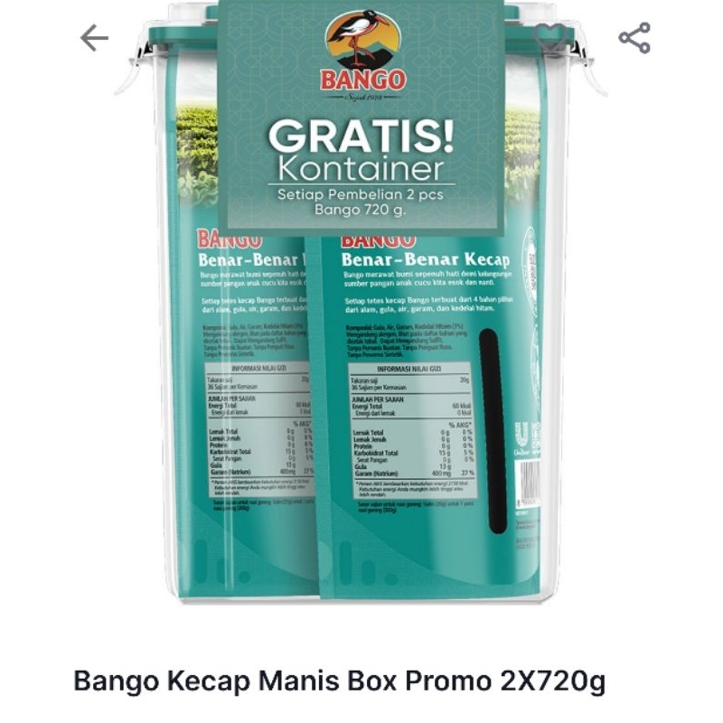 Bango Kecap Manis Box Promo 2X720g