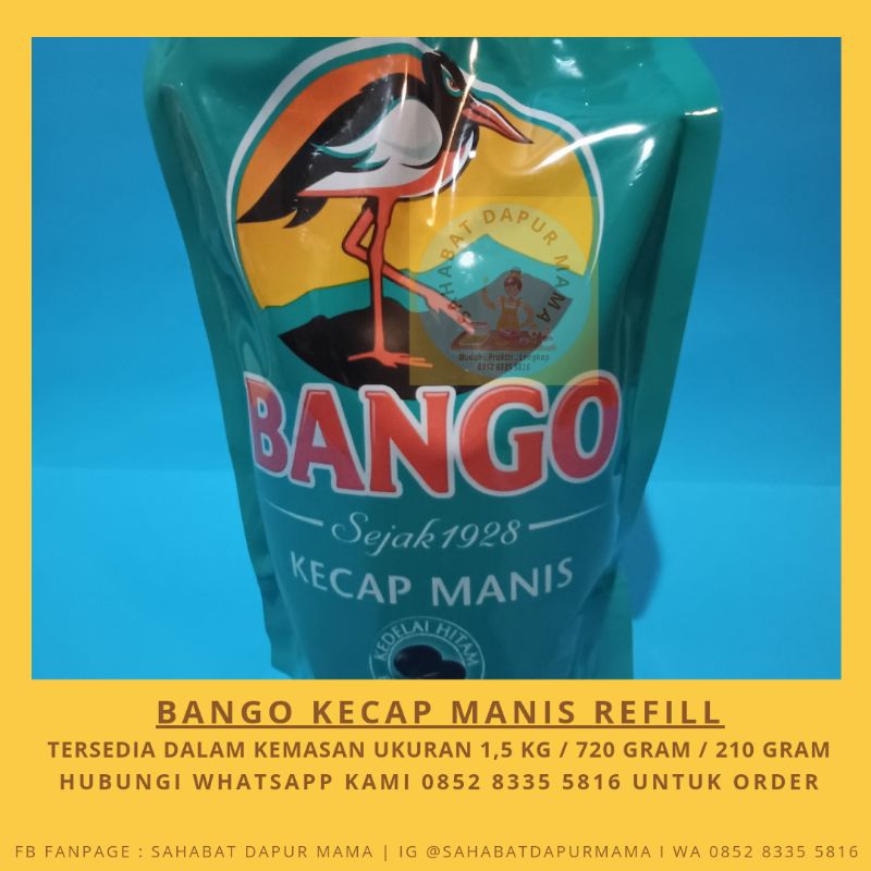 Bango Kecap Manis Refill 210gram adalah kecap manis yang terbuat dari bahan alami berkualitas, yaitu menggunakan mallika kedelai hitam unggulan. Dapat digunakan pada berbagai jenis masakan seperti tumisan, goreng, bakar atau panggang.