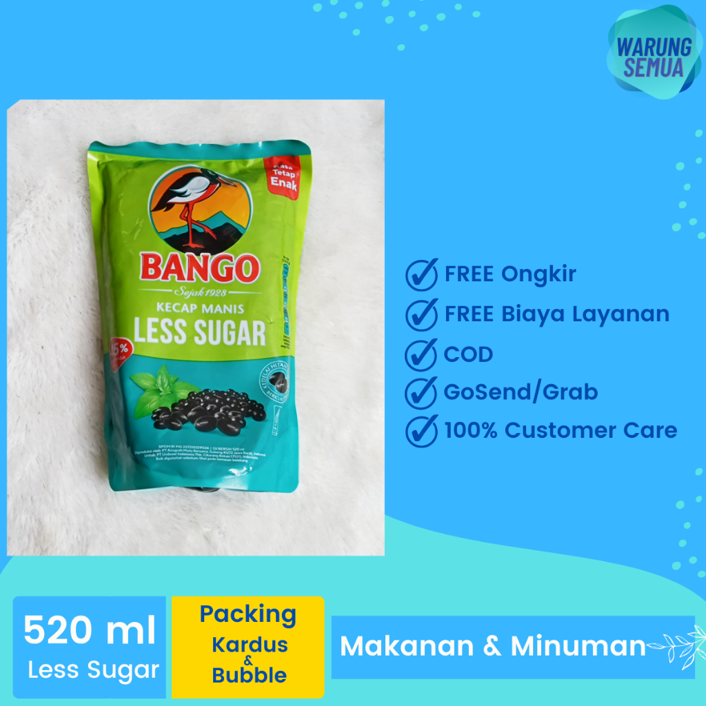 Bango Less Sugar 520ml (Kecap Rendah Gula) + FREE Packing Kardus dan Bubble Wrap