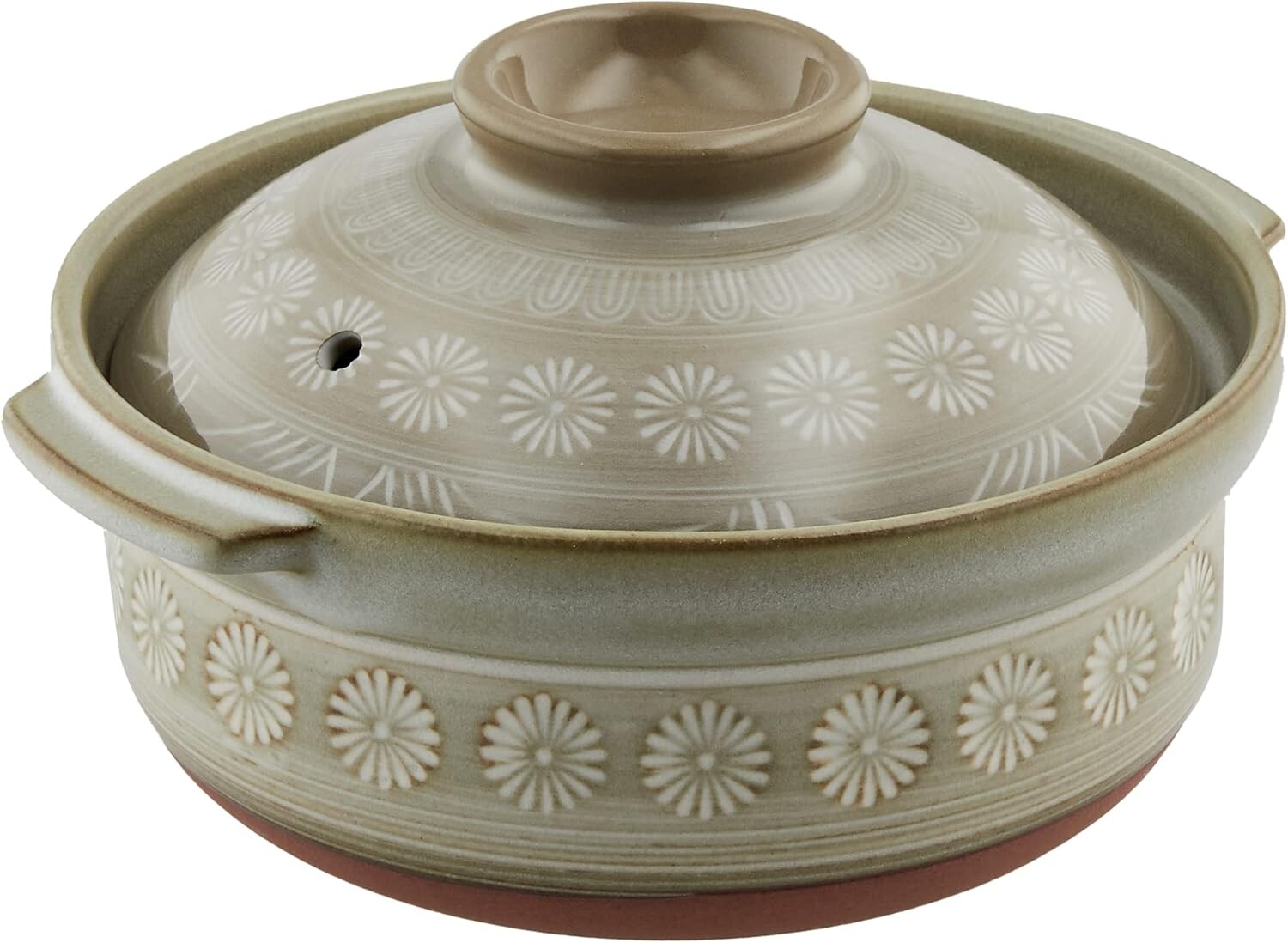 Banko Ware 21681 Ginpo Hanamishima, очень глубокая кастрюля № 6, для 1–2 человек, диаметр 7,5 x высота 5,9 дюйма (19 см) x высота 5,9 дюйма (15 см), совместимость с прямым огнем, можно использовать в микроволновой печи, сделано в Японии, Gray
