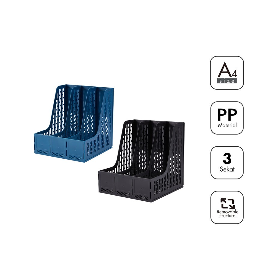 - BJ7643 (3 section, 54.5 x 27.5 x 30 cm): Ideal untuk koleksi majalah dengan ukuran sedang