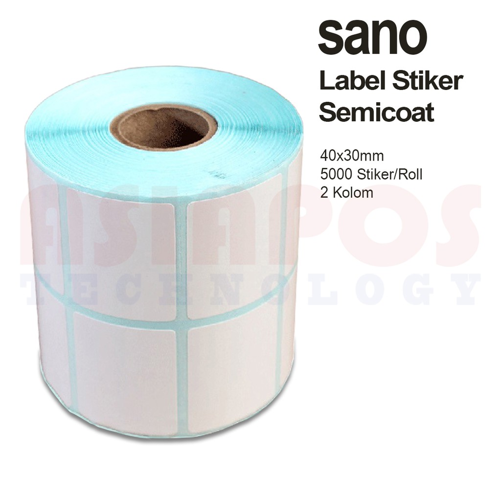 Label Sticker Semicoat 40mm X 30mm dengan jarak vertical antar label sebesar 2mm, 2 baris sticker dan juga berisi 2000 label per rollnya.
