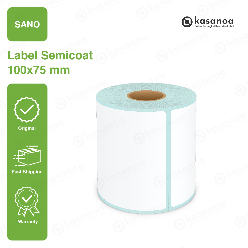 Jual Barcode Label Sticker Semicoat Sano 10075, Compatible for All Thermal Transfer Barcode Printer