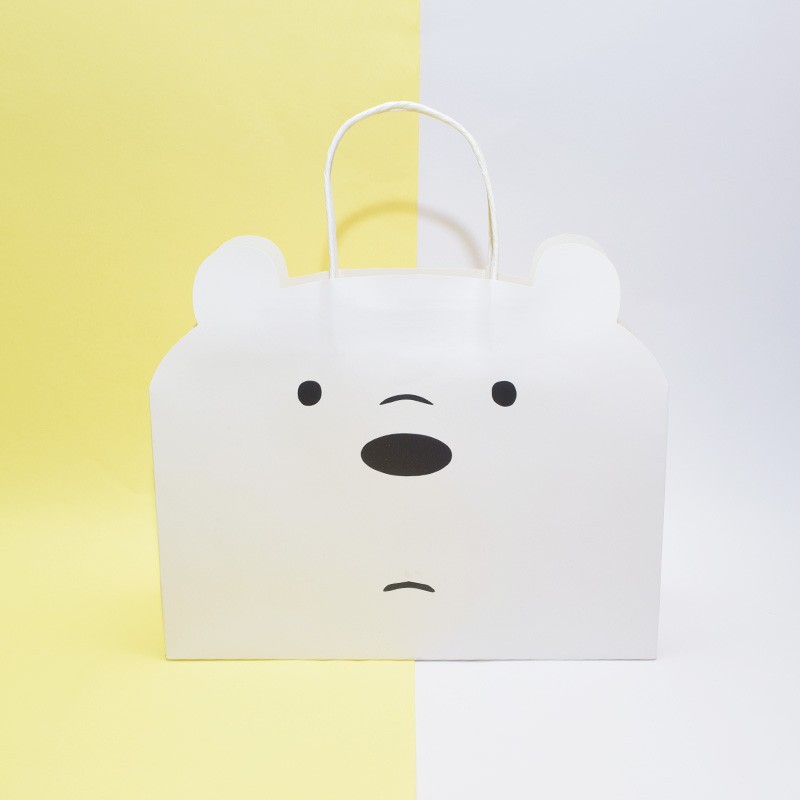 Kantong kertas (paper bag) dekoratif bertema karakter panda dan duo beruang lucu dari serial We Bare Bears yang mungkin sudah kamu kenal.